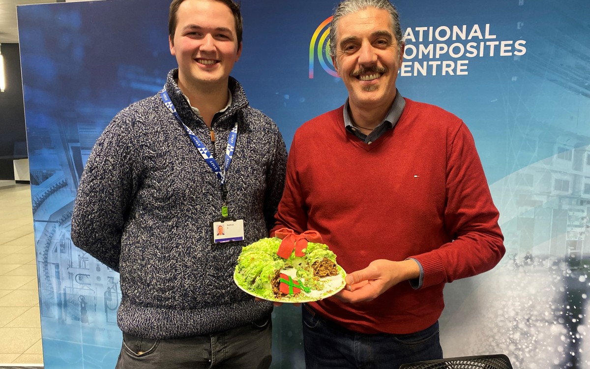 Staff added items to collection boxes throughout the month, with a group of NCC elves using the money donated to buy more gifts and food. Some of the money raised came from a very special Christmas bake sale and competition held at the NCC in the Bristol and Bath Science Park, which was judged by Great British Bake Off champion – and former NCC Chief Engineer – Giuseppe Dell’Anno. Giuseppe also held an exclusive book signing session for NCC colleagues, with copies of his first book – Giuseppe’s Italian Bakes – available to all. The prize of 'Star Baker' was awarded to Matthew Smith, Graduate Research Engineer, pictured with Giuseppe.