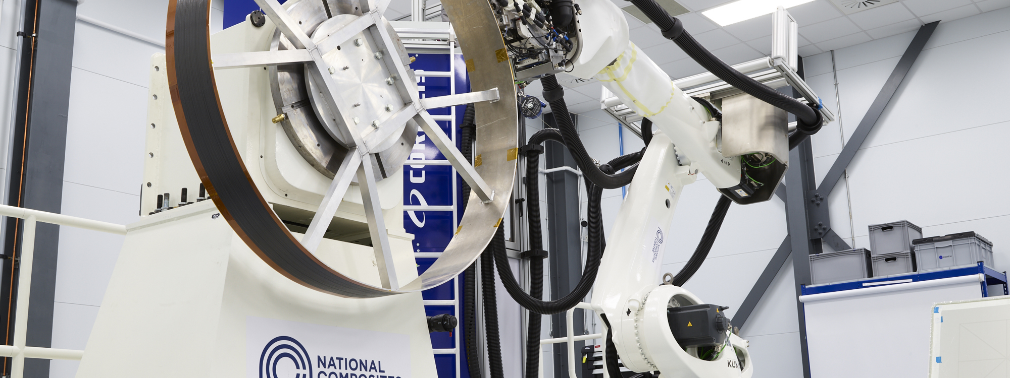 Other technologies include a giant circular Braider, the largest of its kind in Europe, which automatically weaves up to 288 individual strands of high strength carbon fibre to create hollow 3D shapes (or geometries), for products such as pipes or aircraft propellers.